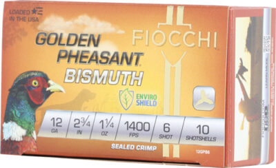 Fiocchi Golden Pheasant Bismuth Shotshells 12ga 2-3/4″ 1-1/4oz 1400 fps #4 10/ct
