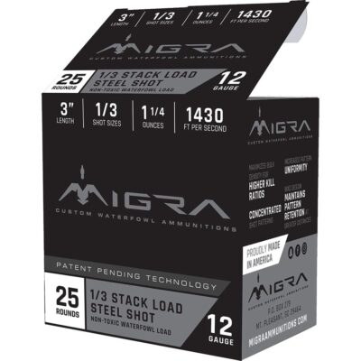 Migra Waterfowl Steel Shot Shotshells 12 ga 3″ 1-1/4 oz 1430 fps #1/#3 25/ct