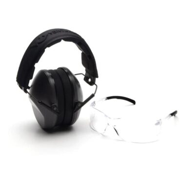 Pyramex Low Profile Combo Kit Passive Black Ear Muff 24dB Clear Shooting Glasses Clear with Clear Lens