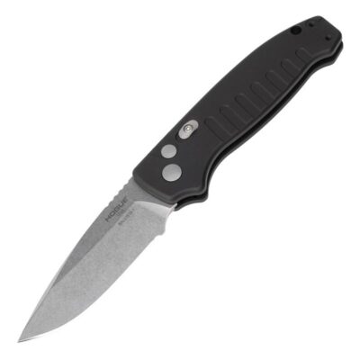 Hogue A01-Microswitch Automatic Folder Knife 2-3/4″ Drop Point Blade Black