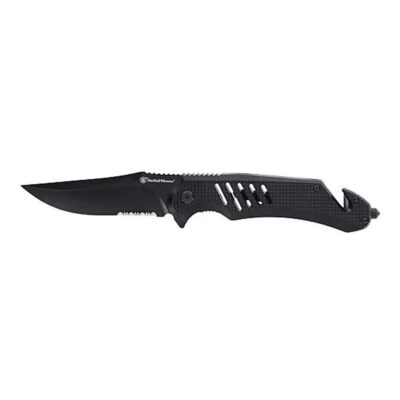 Smith & Wesson Extreme Ops Folding Knife 3-1/2″ Clip Point Blade Black with Glass Breaker and Strap Cutter