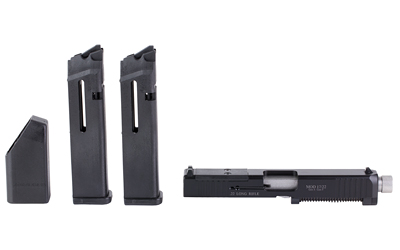 Advantage Arms Conversion Kit: Convert your 9mm/.40 S&W down to 22lr so trips to the range don’t break the bank. The MOD series is meant to fit Glock 17/22 Gen 4 and includes two 15 round magazines, a 5″ threaded barrel, a range bag, and a recessed cut for a variety of red dot options. It’s the perfect tool to work on your muscle memory or to have some fun with your 22lr can. Red Dot Not Included.