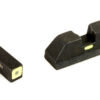 AmeriGlo CAP (Combat Application Pistol) sets allow the shooter to align a highly visible front post with a brightly colored horizontal paint bar on the rear sight for rapid target acquisition. Point of impact is the A-Box at 15 yards when any portion of the front sight is visible in the rear notch, allowing for rapid sight alignment.