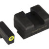 Sight set with green tritium lamp front, one green tritium lamp rear (centered below notch) for Glocks. Designed for simple front sight acquisition while retaining rear illumination.