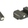 Sight set with green tritium lamp, orange or luminescent green outline front and two green tritium lamp, white outline rear for Glocks. Highly visible under all lighting conditions. LumiGreen paint will glow brightly for 10 minutes after light exposure.