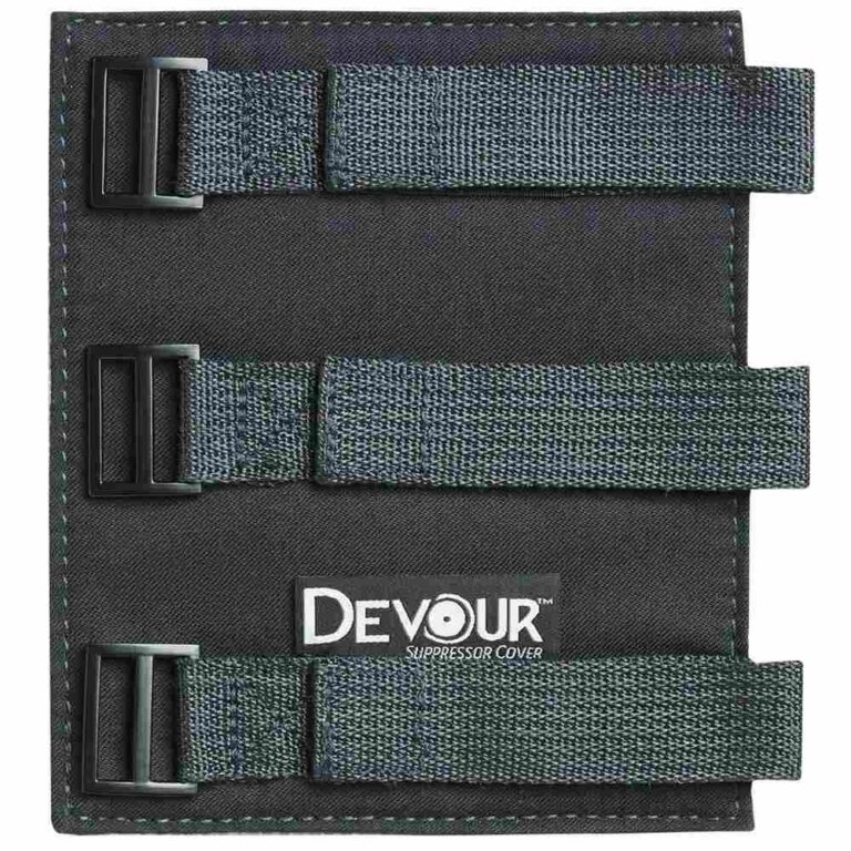 The Devour Suppressor Cover protects yourself and your gear against suppressor heat. The Devour cover also helps to mitigate optical mirage. As an added benefit it protects your silencer from scratches and dings that come with normal use. It is easy to put on allowing you to install or remove a suppressor while still hot. This prevents you from getting burned while letting you shoot comfortably from different positions.The Devour Suppressor Cover features include an industrial silica-coated non-slip design held tight with adjustable straps. The carbon fiber felt is e-Glass 1800 F rated and a noncombustible material that is ideal for high-temperature protection.