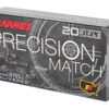 With the introduction of the most accurate commercially loaded round on the planet, Barnes enters the world of match ammunition in 2015 with Precision Match. As a proud supplier of precision ammunition to America’s Military Elite, Barnes makes top tier ammunition commercially available for the elite, technical shooter who demands uncompromising performance. Precision Match Ammunition delivers exceptionally accurate, long range allowing the shooter to SEND IT WITH CONFIDENCE every time. Precision Match, engineered for precision at extreme distances, features exceptionally low standard deviations and extreme variations due to Barnes’ exacting manufacturing and quality standards. Precision Match rounds are loaded with a match grade OTM (Open Tip Match) BT projectile featuring a long boat tail and high B.C. As an additional bonus, scan the QR code located on the back of each box to view Doppler radar generated drop tables specific to each load. Precision Match will be offered in 5.56 X 45MM 69 grain OTM BT, 5.56 X 45MM 85 grain OTM BT, 6.5 Creedmoor 140 grain OTM BT, 308 Win 175 grain OTM BT, 300 Win Mag 220 grain OTM BT, and 338 Lapua Mag 300 grain OTM BT.