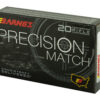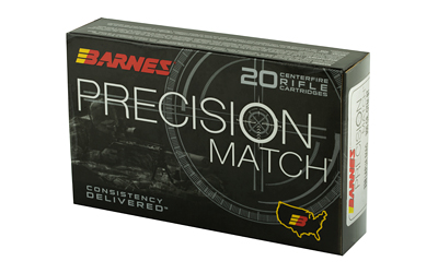 With the introduction of the most accurate commercially loaded round on the planet, Barnes enters the world of match ammunition in 2015 with Precision Match. As a proud supplier of precision ammunition to America’s Military Elite, Barnes makes top tier ammunition commercially available for the elite, technical shooter who demands uncompromising performance. Precision Match Ammunition delivers exceptionally accurate, long range allowing the shooter to SEND IT WITH CONFIDENCE every time. Precision Match, engineered for precision at extreme distances, features exceptionally low standard deviations and extreme variations due to Barnes’ exacting manufacturing and quality standards. Precision Match rounds are loaded with a match grade OTM (Open Tip Match) BT projectile featuring a long boat tail and high B.C. As an additional bonus, scan the QR code located on the back of each box to view Doppler radar generated drop tables specific to each load. Precision Match will be offered in 5.56 X 45MM 69 grain OTM BT, 5.56 X 45MM 85 grain OTM BT, 6.5 Creedmoor 140 grain OTM BT, 308 Win 175 grain OTM BT, 300 Win Mag 220 grain OTM BT, and 338 Lapua Mag 300 grain OTM BT.