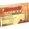 Barnes(R) VOR-TX(R) is precision ammunition loaded with the deadliest bullets on the planet. Barnes, the leader in bullet innovation offers hunters the ultimate in accuracy, terminal performance and handloaded precision in a factory loaded round. Offering double-diameter expansion, maximum weight retention and excellent accuracy, the TSX(R), Tipped TSX(TM), and TSX FN(TM) provide devastating energy transfer. Multiple grooves in the bullet’s shank reduce pressure and improve accuracy. Bullets open instantly on contact – no other bullet expands as quickly. Nose peels back into four sharp-edged copper petals.