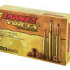 Barnes(R) VOR-TX(R) is precision ammunition loaded with the deadliest bullets on the planet. Barnes, the leader in bullet innovation offers hunters the ultimate in accuracy, terminal performance and handloaded precision in a factory loaded round. Offering double-diameter expansion, maximum weight retention and excellent accuracy, the TSX(R), Tipped TSX(TM), and TSX FN(TM) provide devastating energy transfer. Multiple grooves in the bullet’s shank reduce pressure and improve accuracy. Bullets open instantly on contact – no other bullet expands as quickly. Nose peels back into four sharp-edged copper petals.