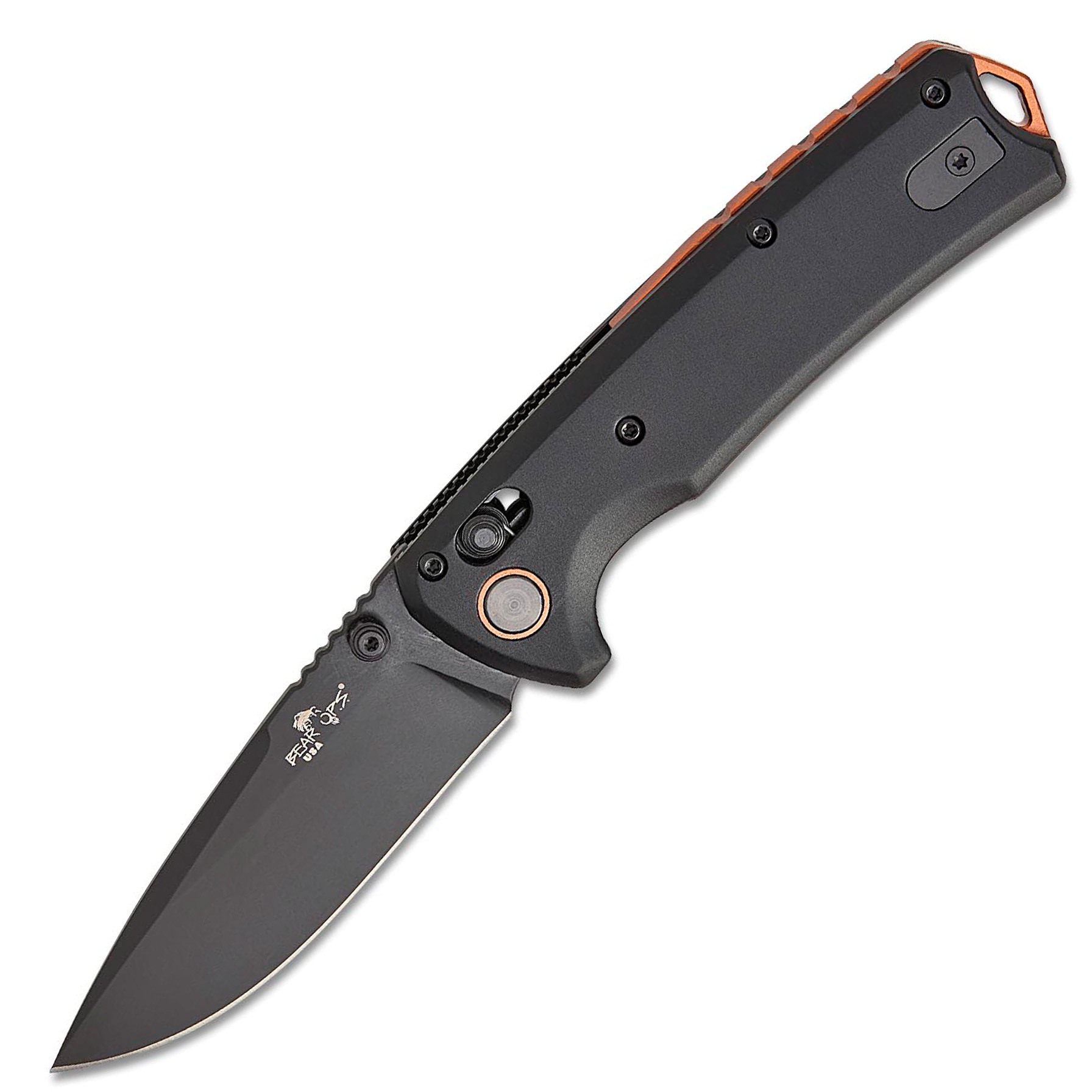 BEAR & SON NEKAMA-II 3.5″ DRP/BLK/BLACK & COPPER NEKAMA II BLACK & COPPER ALUMINUM HANDLE 14C28N DLC BLACK MODIFIED TANTO BLADE BEAR OPS – Made in the USA with USA manufactured parts, Materials and Workforce.