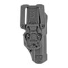 With its streamlined thumb-activated retention, the T-Series L3D keeps your firearm at the ready while maintaining total security. Thanks to a drawing motion that operates off of the Master Grip Principle, you’ll be able to get into the fight under even the most stressful of circumstances. A combination of reinforced outer polymer and smooth, sound-dampening, hydrophobic lining ensures your T-Series will perform no matter the elements and situation. As an added measure of security, the L3D also features a strap across the back of the firearm. Includes Jacket Slot Belt Loop attached to holster.