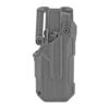 With its streamlined thumb-activated retention, the T-Series L3D keeps your firearm at the ready while maintaining total security. Thanks to a drawing motion that operates off of the Master Grip Principle, you’ll be able to get into the fight under even the most stressful of circumstances. A combination of reinforced outer polymer and smooth, sound-dampening, hydrophobic lining ensures your T-Series will perform no matter the elements and situation. As an added measure of security, the L3D also features a strap across the back of the firearm. Includes Jacket Slot Belt Loop attached to holster.