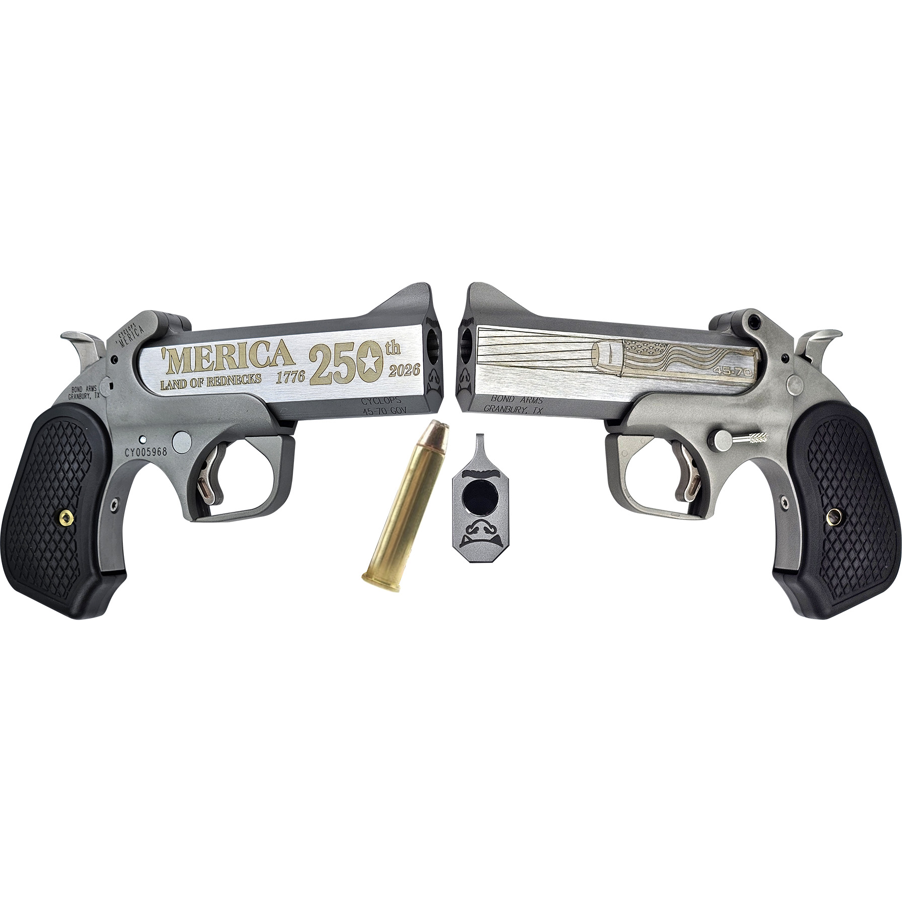 250TH 45-70 4.25″ DERRINGER 250TH 45-70 4.25″ DERRINGER Limited Ed. engraved Flat side SS barrel and SS Frame Rough series Merica