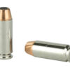 COR(R)BON JHP(TM) is the traditional hollow point that put COR(R)BON on the map. JHP(TM) is proven ammunition that provides reliable penetration and expansion. The internal and external serrations and soft lead cavity provide stopping power and an average penetration of 9 to 15 inches in ballistic gelatin.