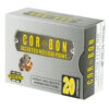COR(R)BON JHP(TM) is the traditional hollow point that put COR(R)BON on the map. JHP(TM) is proven ammunition that provides reliable penetration and expansion. The internal and external serrations and soft lead cavity provide stopping power and an average penetration of 9 to 15 inches in ballistic gelatin.
