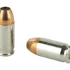 COR(R)BON JHP(TM) is the traditional hollow point that put COR(R)BON on the map. JHP(TM) is proven ammunition that provides reliable penetration and expansion. The internal and external serrations and soft lead cavity provide stopping power and an average penetration of 9 to 15 inches in ballistic gelatin.