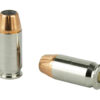 COR(R)BON JHP(TM) is the traditional hollow point that put COR(R)BON on the map. JHP(TM) is proven ammunition that provides reliable penetration and expansion. The internal and external serrations and soft lead cavity provide stopping power and an average penetration of 9 to 15 inches in ballistic gelatin.