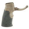 Daniel Defense’s Pistol Grip is designed with ergonomics and controllability in mind. It shares the angle of the classic 1911 pistol for the most natural hand position and comfortable feel. This pistol grip incorporates an oversized trigger guard covering the gap between grip and lower receiver which can wear on the shooters hand and easily accommodates for gloves. Installation is simplified by the fact the integral trigger guard doesn’t require a roll pin so there is a reduced chance of damaging the lower receiver. A soft touch overmolding section enhances grip, wet or dry.