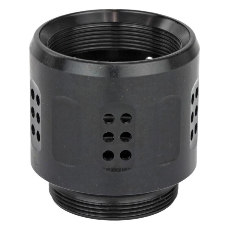 The E-Brake provides added recoil reduction while also providing a more “diffused” venting of the high-pressure gases escaping the front of the suppressor. The vent holes allow for a softer release than other offerings on the market so there’s less dust kicked up when shooting prone and it doesn’t burn the ears of bystanders.