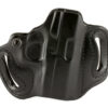 The Mini Slide(R) is a premium saddle leather, double seams and a highly detailed molded fit, make this exposed muzzle, tight fitting, two-slot holster a great choice for your favorite pistol. It features an adjustable-tension device. Available in black or tan unlined leather. Belt slots are 1 3/4″ wide.