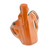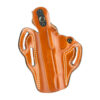 The firearm rides high and is presented at an optimum draw angle. Its thumb break and exact molding, together with a tension device, allows for a secure and highly concealable carry. Belt slots are 1 3/4″ wide. Some models with two belt slots and without tension device.