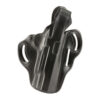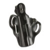 The firearm rides high and is presented at an optimum draw angle. Its thumb break and exact molding, together with a tension device, allows for a secure and highly concealable carry. Belt slots are 1 3/4″ wide. Some models with two belt slots and without tension device.