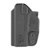 The Slim-Tuk(R) is a new minimal ambidextrous IWB holster fashioned from Kydex(R) sheet. One of the most unique features about this IWB holster is that it uses their tuck-able 360(R) C-Clip, which affords the wearer unlimited mounting options. The hardware can easily be reversed to change from right to left hand. The Slim-Tuk(R) is precision molded and has adjustable tension and a rugged 1.75″ nylon clip.