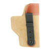 SOF-TUCK(TM) #106 is a new IWB/Tuck-able holster with adjustable cant. It can be worn strong side, cross draw or on the small of the back. It is built from soft, no-slip suede and reinforced at the top with premium saddle leather to aid in re-holstering. The #106 is available for most concealable hand guns in right and left hand.