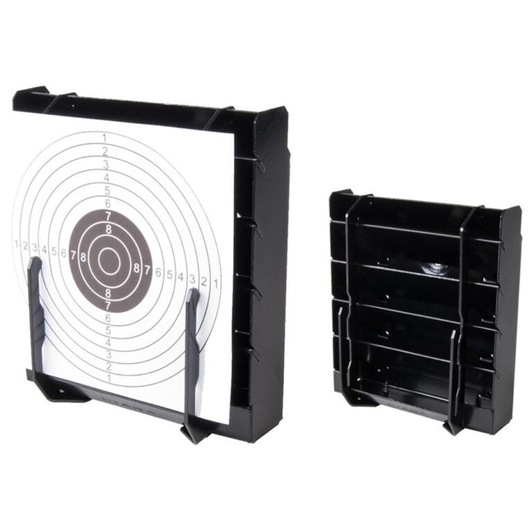 Diana's Universal Air Gun Target Holder is the perfect target for beginning shooters. The easy to mount holder is completely designed of steel of steel a feature that guarantees a long life for the device. The mount holds paper targets with 4" x 4" to 5.5" x 5.5" dimensions. The metal slats in the target box are arranged obliquely downwards prevent ricochets and catch the bullets safely. Suitable for steel lead airsoft bb's and air gun pellets.