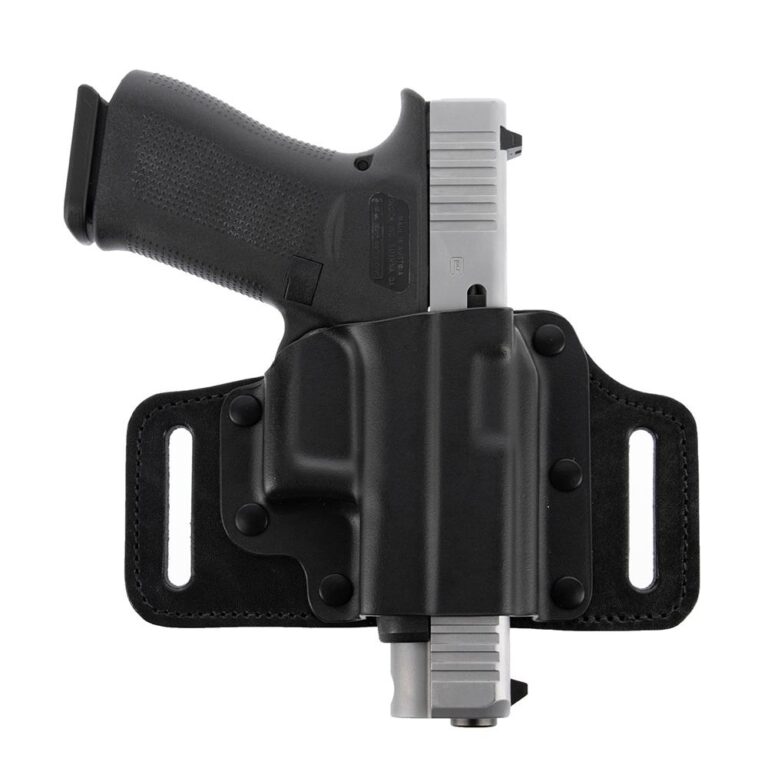 The wide spacing of the 1 3/4” belt slots pulls the handgun in tight to the body for excellent concealment. The TacSlide’s silhouetted belt-slide design accommodates multiple barrel lengths on the same basic frame size while simultaneously minimizing overall bulk. The steerhide backplate is smooth where it rides against the wearer’s body greatly increasing comfort.
