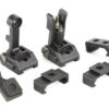M2 Sights Deploy Kit-Griffin Armament is proud to introduce affordable Micro Modular Sights (M2) compatible with Picatinny rail systems. Griffin M2 sights offer an industry first, patent pending, modular base plate system. Constructed from QPQ Treated 17-4 and ordnance grade steel, Griffin M2 Sights were designed to be the correct product for every backup sight application. A shooter can use these durable, low profile sights in a 12 o’clock mounted application while having the flexibility to reconfigure them to ambidextrous 45 degree angle sights using the alternate and available angle plates. This flexibility ensures these sights can be used by anyone and will never end up in a box of undesirable legacy kit. The full M2 deployment kit includes the front and rear sight assemblies as well as both vertical and angled bases for a complete modular system. However, sights and bases are available separately for users who wish to buy parts as needed. The front A2 sight provides elevation adjustment while ensuring maximum aftermarket support for your favorite post, be it tritium, fiber optic, match grade, or otherwise. An extremely low profile, snag resistant, slotted rear windage screw, affords easy but more importantly secure adjustability. Robust spring tension of both front and rear flip up assemblies ensures accurate repeatability every time the sight towers are actuated. Never before has a product in this category offer this degree of flexibility. Griffin M2 Sights have a minimal foot print, and are among the smallest backup sights on the market. For a mere 2 and half ounces your rifle can be equipped with a durable iron sight system, to provide aiming capability in rain, snow, or fog, on or off axis without dependence on batteries or glass.