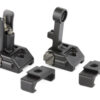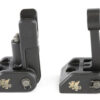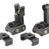 M2 Sight Kit- Griffin Armament is proud to introduce affordable Micro Modular Sights (M2) compatible with Picatinny rail systems. Griffin M2 sights offer an industry first, patent pending, modular base plate system. Constructed from QPQ Treated 17-4 and ordnance grade steel, Griffin M2 Sights were designed to be the correct product for every backup sight application. A shooter can use these durable, low profile sights in a 12 o’clock mounted application while having the flexibility to reconfigure them to ambidextrous 45 degree angle sights using the alternate and available angle plates. This flexibility ensures these sights can be used by anyone and will never end up in a box of undesirable legacy kit. The full M2 deployment kit includes the front and rear sight assemblies as well as both vertical and angled bases for a complete modular system. However, sights and bases are available separately for users who wish to buy parts as needed. The front A2 sight provides elevation adjustment while ensuring maximum aftermarket support for your favorite post, be it tritium, fiber optic, match grade, or otherwise. An extremely low profile, snag resistant, slotted rear windage screw, affords easy but more importantly secure adjustability. Robust spring tension of both front and rear flip up assemblies ensures accurate repeatability every time the sight towers are actuated. Never before has a product in this category offer this degree of flexibility. Griffin M2 Sights have a minimal foot print, and are among the smallest backup sights on the market. For a mere 2 and half ounces your rifle can be equipped with a durable iron sight system, to provide aiming capability in rain, snow, or fog, on or off axis without dependence on batteries or glass.