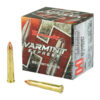 Hornady Varmint Express ammunition is designed around the hard-hitting performance of the famous V-MAX bullet. Polymer tipped V-MAX bullets deliver match accuracy, high ballistic coefficients, wind defying trajectories, and rapid fragmentation upon contact. Each Varmint Express offering is loaded with high quality cases and carefully selected propellant and primers that are chosen to provide the best performance in each individual load.