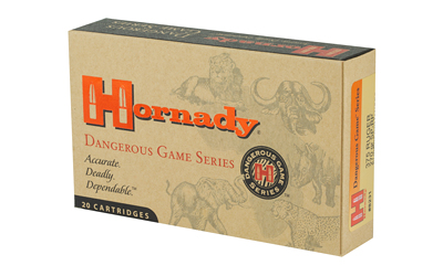 Hornady(R) manufactures Dangerous Game(TM) Series ammunition with only the finest components, under strict quality control measures. Their classic bullet designs are tailored to meet the needs of the serious safari hunter.