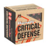 All Critical Defense(R) ammunition is loaded in nickel-plated cases for increased visibility in low-light situations. Premium low flash propellants deliver proven performance, even in very short-barreled handguns, and won’t disrupt your vision. Reliable expansion and dependable terminal performance can be counted on for concealed carry and personal protection.