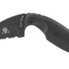 In extreme close-quarter encounters where a suspect is attempting to take an officer’s handgun, or an officer cannot access his or her handgun, the TDI knife is available as a last option knife. When worn on the pant belt the entire unit – knife and sheath – is well concealed. Designed by John Benner, founder and owner of Tactical Defense Institute. Features a fully serrated blade for cutting looped and synthetic materials. Hard plastic sheath and reversible black metal belt clip included.