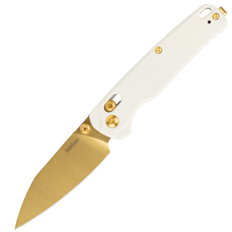 KERSHAW BEL AIR POPE WHITE HANDLE GOLD BLADE Magnacut MGE Exclusive