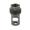 This muzzle device will allow the end user to utilize an R30T or R338 suppressor on weapons that have 5/8×24 muzzle threads. Heat-treated Chromoly Steel with OXyN gas nitride finish. Bored to accept up to .338 projectiles.