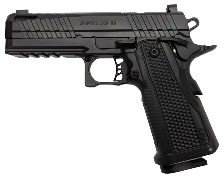 This version features a 4.15-inch barrel, making it an ideal choice for concealed carry or for users who prefer a more compact profile without sacrificing the superior functionality of the Apollo series. Despite its reduced size, the compact model maintains a robust double-stack magazine capacity of 17+1 rounds of 9mm, ensuring that firepower is not compromised. Engineered with precision, the Apollo 11 Compact retains the hallmark features of its larger version. It boasts a heat-treated 416 stainless steel slide and a durable 4140 steel frame, providing reliability and a sophisticated appearance. The pistol’s shorter barrel is matched with a meticulously tuned trigger system for a crisp, consistent pull and a left-hand 1:16 rifling, ensuring remarkable accuracy in a smaller package. The compact design enhances concealability and handling, while the innovative recoil reduction system and ergonomic grip texture offer comfortable shooting and effective control. Equipped with an RMSc optic cut and accessory rails, this compact model offers versatility and customization, making it a top choice for both everyday carry and tactical applications.The Apollo 11 Compact is a testament to Live Free Armory’s dedication to quality and innovation, backed by a Lifetime Warranty with reliability guaranteed.