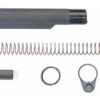 Luth-AR’s 9mm Mil-Spec Carbine Buffer Tube Complete Assembly Kit for AR-15 rifles includes a Mil-Spec diameter carbine buffer tube, 9mm carbine recoil buffer, carbine recoil spring, receiver end plate and castle nut.