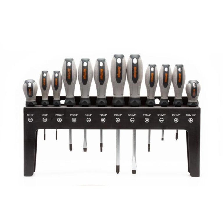 The Heritage series of tools incorporates Lyman’s nearly 150 years of experience producing quality equipment and tools for sportsmen. Our 12 Piece Heritage Screwdriver Set includes all the basic drivers that you’ll need your firearm outdoor sports household and general maintenance jobs. The drivers are made of tough chrome vanadium steel and equipped with comfortable textured non-slip grips. The straight bits have hollow ground tips for proper non-slip fit in slotted screws. The set includes 5 slotted tip drivers 5 Phillips drivers and 2 Torx drivers. All are packaged in a sturdy organizer stand which can either be placed on your bench or be hung on a wall or pegboard.