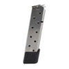 Power Mags are lean and sleek, yet they are extra-heavy-duty with increased reliability and service life. A unique all-steel follower design yields the lowest possible bearing surface for long-lasting function in dirty environments when ongoing cleaning and maintenance may not be possible. The unique follower design also functions as a spring, which allows the high tensile rocket wire spring coils to be the largest (side to side, front to back, and top to bottom) of any extra capacity .45 caliber 1911 magazine.