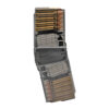 Featuring a unique coupling mechanism integral to the floor plate, couple two magazines end-to-end in 4 unique configurations in seconds, allowing faster reloads. The transparent bodies allow quick visual indication of how many rounds you have left, or the type of rounds, which is particularly useful for running 300 Blackout. The integral coupling floor plate allows you to couple the magazines end-to-end in either a curved or straight configuration; from there you decide if you want your cartridges facing forward/forward, or forward/reverse. If you ever change your mind about a configuration, change it seconds, without extra parts or special tools. Or un-couple the mags and take advantage of low-profile mags to shoot prone, on a bench or hunt in the woods.