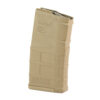 The 7.62×51 NATO (.308 Winchester) PMAG 20 LR/SR GEN M3 is a lightweight, cost effective, highly reliable magazine for SR25/M110 pattern rifles. It features true 20-round capacity, a constant-curve body, an anti-tilt follower, and a snap on impact / dust cover. The GEN M3 PMAGs feature a long-life stainless steel spring, an anti-tilt, self-lubricating follower, and constant-curve internal geometry for reliable feeding. Low profile ribs and an aggressive front and rear texture give positive control of the GEN M3 in all environments, and a paint pen dot matrix at the bottom panel of the body to allow easy marking by the end user for identification. The easy-to-disassemble flared floorplate aids extraction and handling of the magazine while providing improved drop protection, and better compatibility with tight double and triple magazine pouches. An included pop-off impact / dust cover can be used to minimize debris intrusion and protect against potential damage to the top cartridge during storage and transit. Its simple, tool-less disassembly makes for for easy cleaning and maintenance. Designed specifically for SAAMI-spec ammunition, the PMAG 20 LR/SR GEN M3 is less than half the weight of standard issue steel magazines and maintains a service life round count approximately equal to the rifle barrel itself.