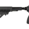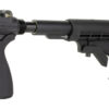 Use Mesa Tactical’s collapsible stock kits and adapters to install AR-15 adjustable buttstocks and pistol grips onto the venerable Mossberg 500 shotgun platforms for the ultimate in tactical shotgun configuration performance. The concept behind the telescoping stock system is simple: the shotgun stock is replaced by an adapter, which attaches to the rear end of the shotgun’s receiver and it, in turn, mimics the rear end of an AR-15 lower receiver, into which an AR-15 receiver extension tube can be threaded. The AR-15 telescoping stock and pistol grip can then be reliably attached.