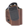 The Holster you’ll carry every day, best of both worlds. Kydex Style Holster fused with Genuine American Full Grain Leather. Get the Kydex style benefit of exacting tolerances, secure retention and easy re-holstering with Leather’s comfort , style and feel. No break in time as compared to traditional leather holsters and a much longer service life. A versatile AIWB, IWB, or OWB capable of use both in right and left-hand positioning; strong side, outside, inside your waistband or appendix carry. Handmade to exacting tolerances for each model of handgun using the most advanced techniques and materials. Adjustable retention and the famous audible ,CLICK, makes each draw and re-holster smooth and secure. All units come standard with a 1.5″ Belt Clip. Use of medium (blue) thread locker on screws suggested