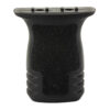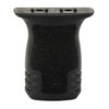 A Compact textured vertical grip designed to minimize material and dimension while providing a positive grip surface. Allows the support hand to apply rearward pressure, keeping the weapon shouldered, yielding better muzzle control and accuracy.