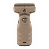A textured vertical grip that deploys in either a vertical or horizontal position and provides a positive grip surface. Allows the support hand to apply rearward pressure keeping the weapon shouldered, yielding better muzzle control and accuracy.