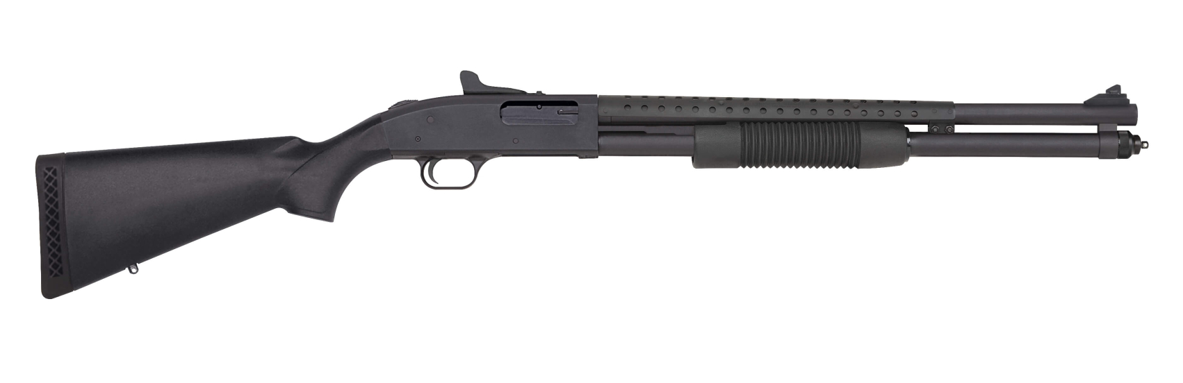 The Mossberg 590 is the perfect choice for your personal and home defense needs. Features are dual extractors, positive steel-to-steel lockup, twin action bars and an anti-jam elevator ensure smooth operation. Top mounted safety provides for ambidextrous operation.